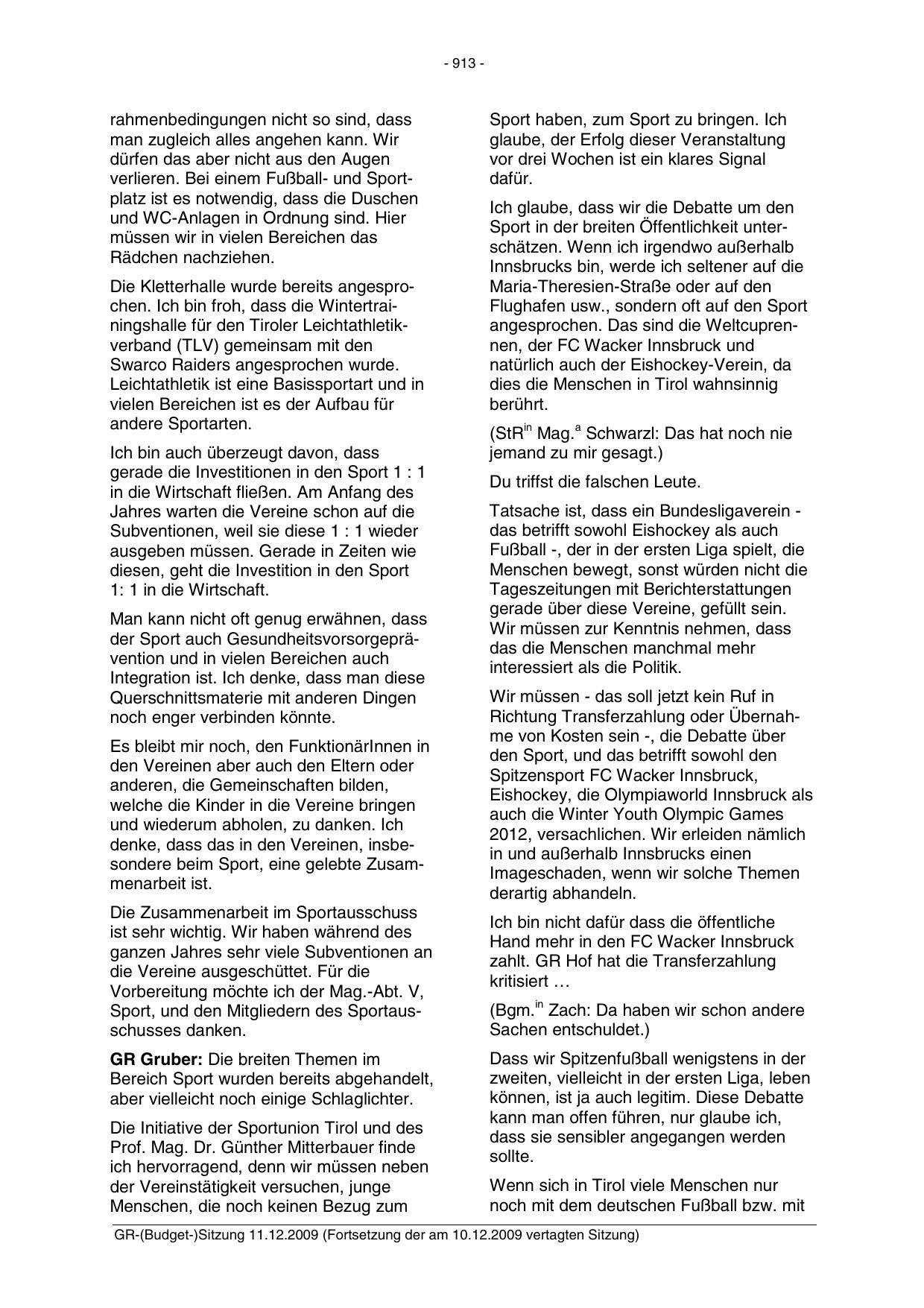 GR-(Budget-)Sitzung 11.12.2009 (Fortsetzung der am 10.12.2009 vertagten Sitzung)