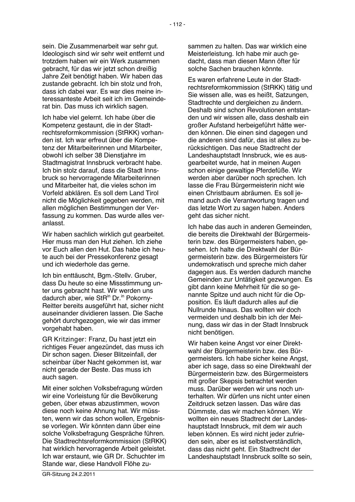 Kompetenz gestaunt, die in der Stadtrechtsreformkommission (StRKK) vorhanden ist. Ich war erfreut über die Kompetenz der Mitarbeiterinnen und Mitarbeiter,