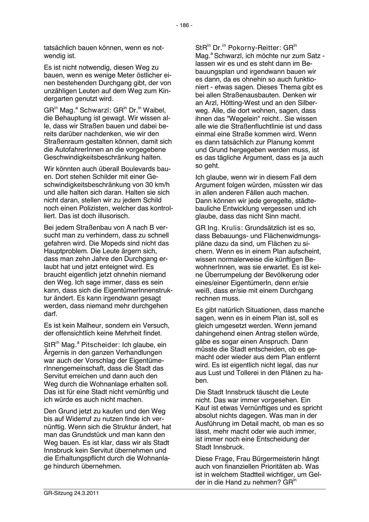 Mag.a Schwarzl, ich möchte nur zum Satz lassen wir es und es steht dann im Bebauungsplan und irgendwann bauen wir