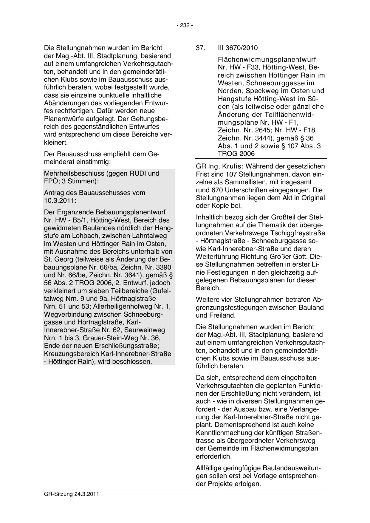 auch - wie in diversen Stellungnahmen gefordert - der Ausbau bzw. eine Verlängerung der Karl-Innerebner-Straße nicht geplant. Dementsprechend ist auch keine