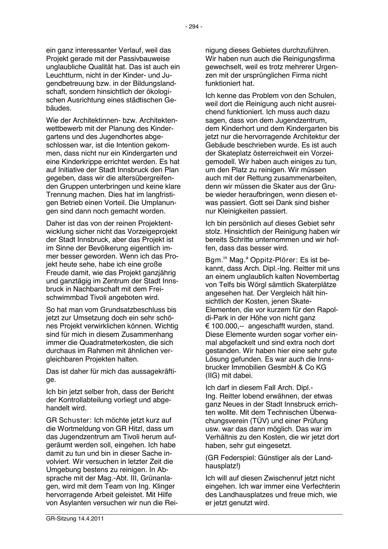 Bgm.in Mag.a Oppitz-Plörer: Es ist bekannt, dass Arch. Dipl.-Ing. Reitter mit uns