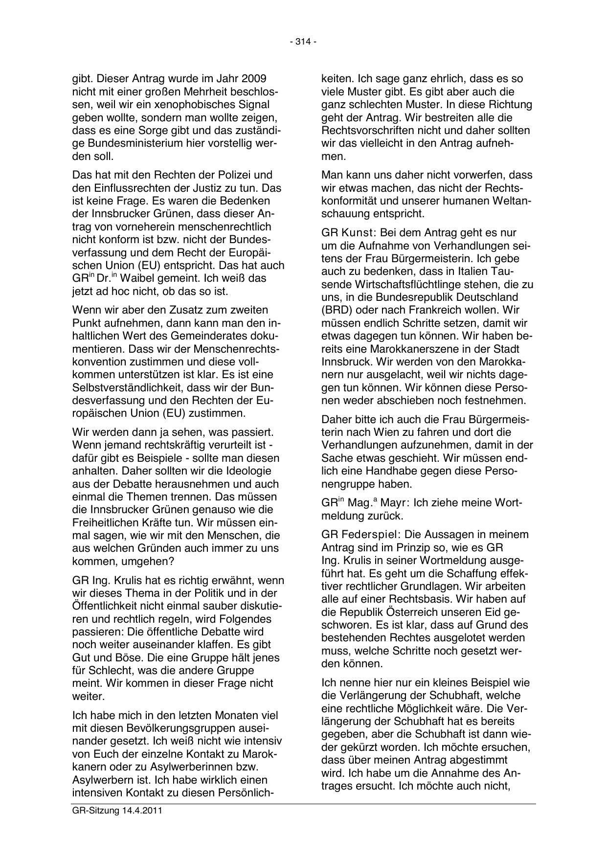 intensiven Kontakt zu diesen PersönlichGR-Sitzung 14.4.2011