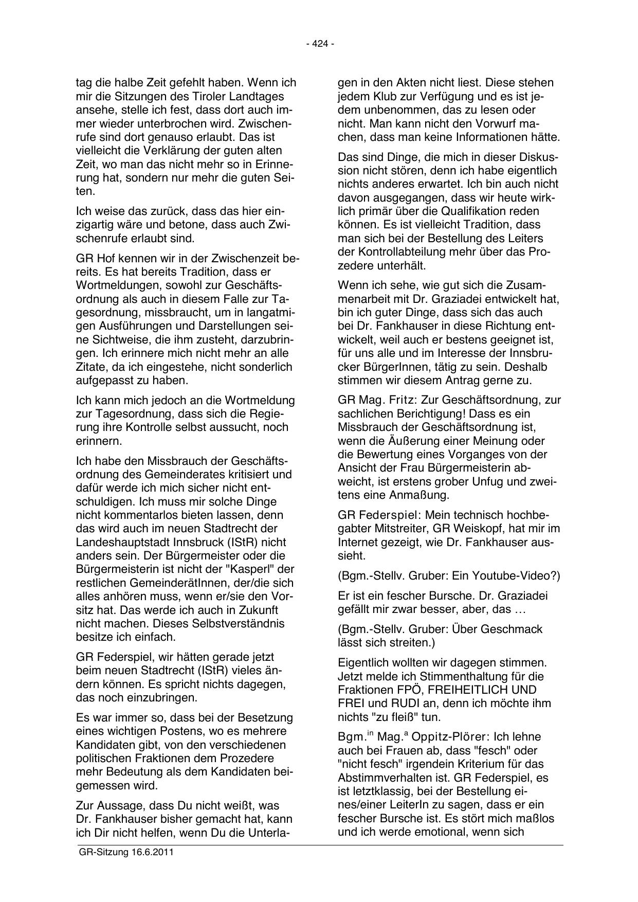 für uns alle und im Interesse der Innsbrucker BürgerInnen, tätig zu sein. Deshalb