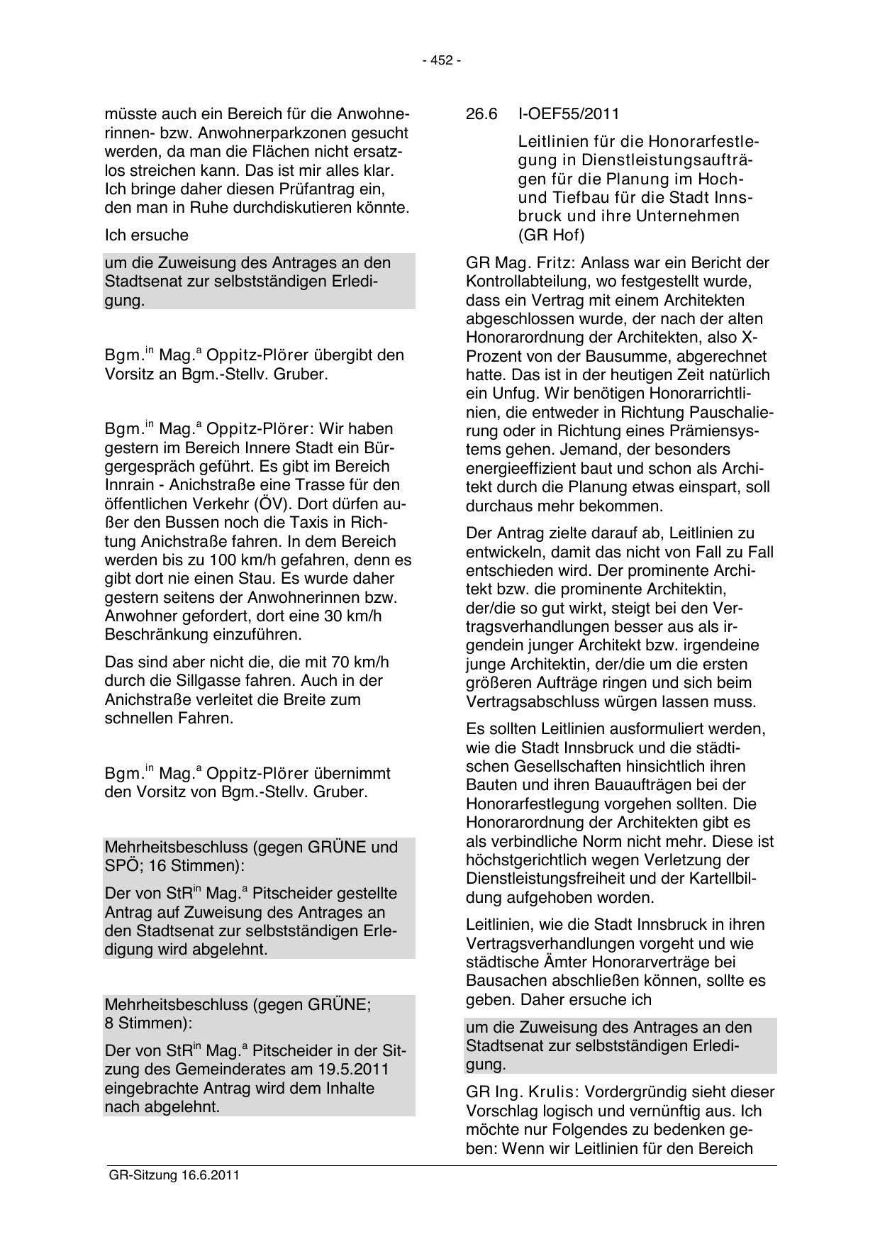 Der von StR Mag. Pitscheider in der Sitzung des Gemeinderates am 19.5.2011