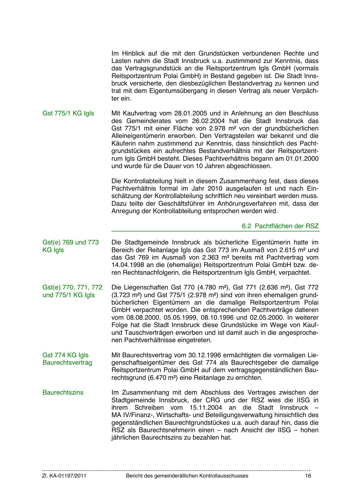 Reitsportzentrum Polai GmbH) in Bestand gegeben ist. Die Stadt Innsbruck versicherte, den diesbezüglichen Bestandvertrag zu kennen und