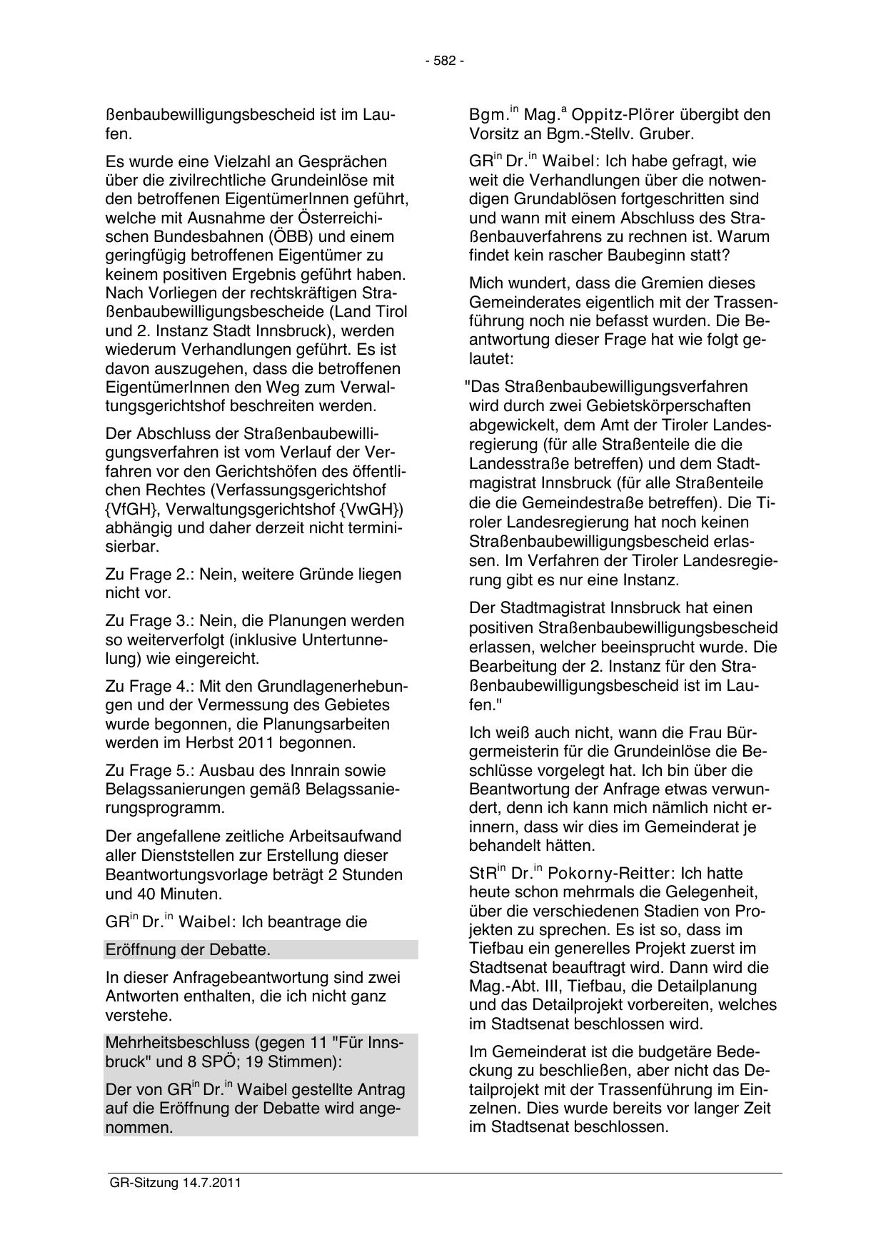 Mehrheitsbeschluss (gegen 11 "Für Innsbruck" und 8 SPÖ; 19 Stimmen):
