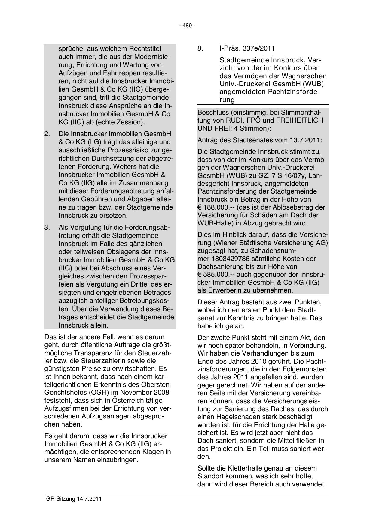 Innsbruck diese Ansprüche an die Innsbrucker Immobilien GesmbH & Co