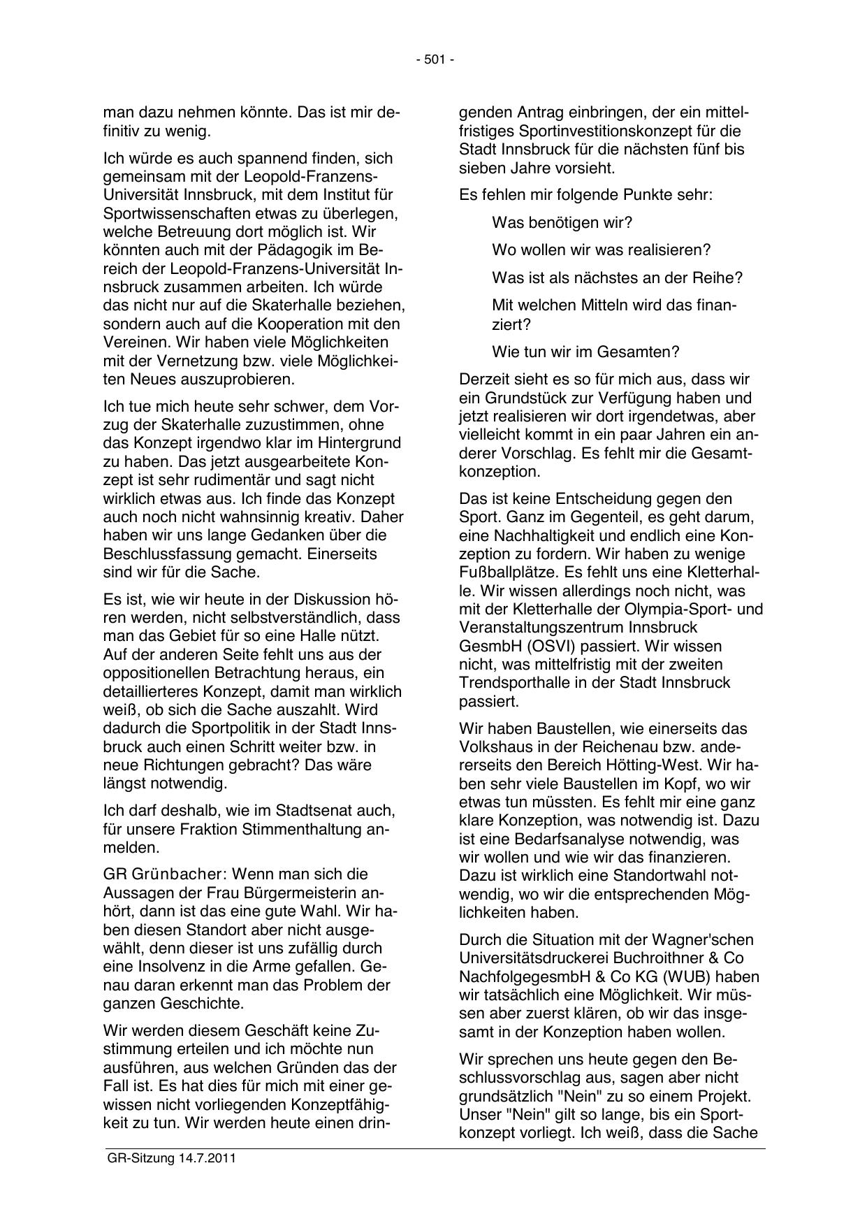Fall ist. Es hat dies für mich mit einer gewissen nicht vorliegenden Konzeptfähigkeit zu tun. Wir werden heute einen drinGR-Sitzung 14.7.2011