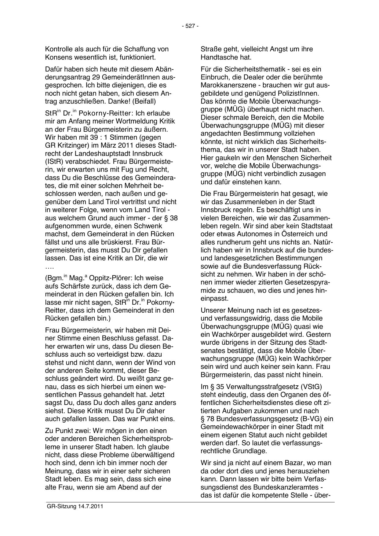 GR Kritzinger) im März 2011 dieses Stadtrecht der Landeshauptstadt Innsbruck