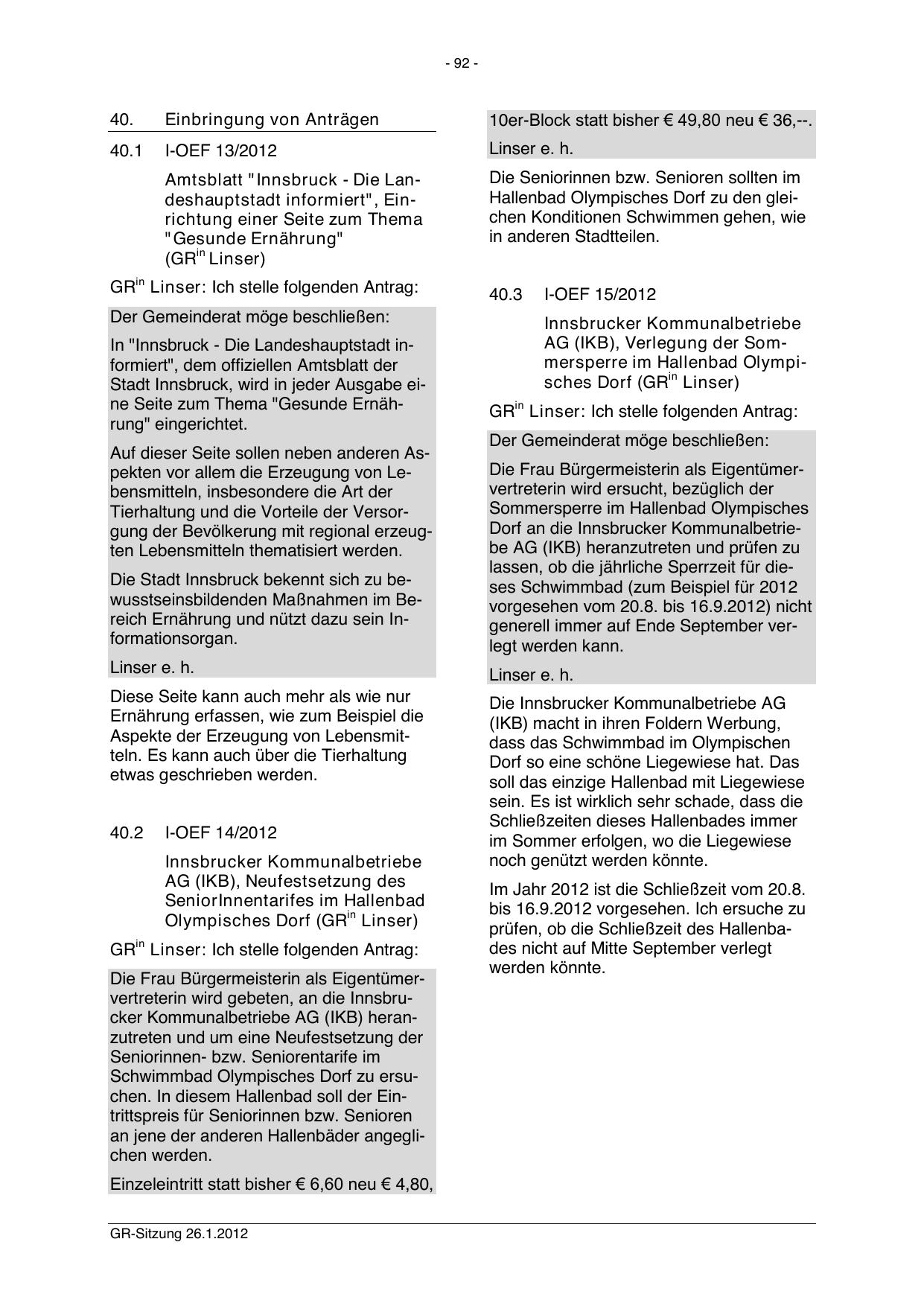 Die Frau Bürgermeisterin als Eigentümervertreterin wird gebeten, an die Innsbrucker Kommunalbetriebe AG (IKB) heranzutreten und um eine Neufestsetzung der