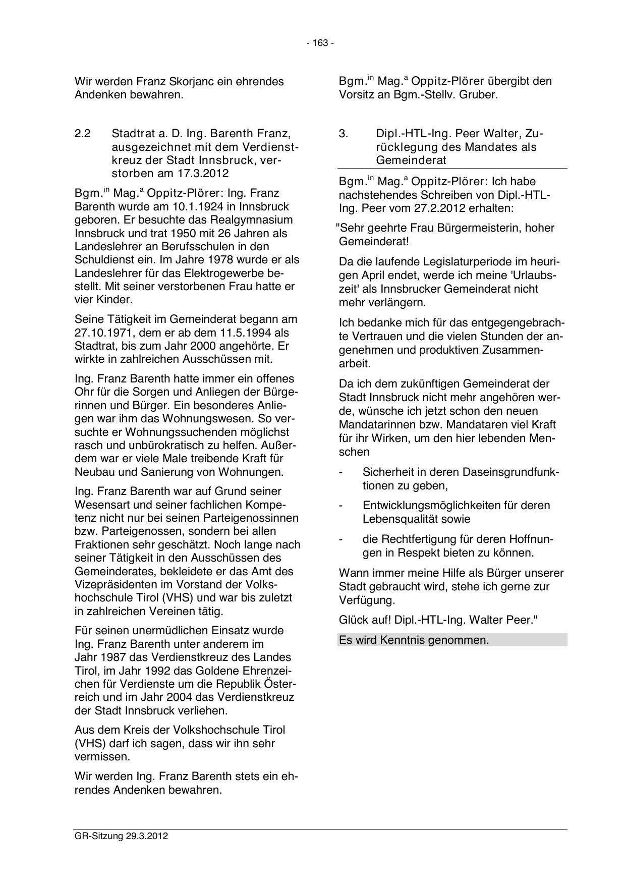 Bgm. Mag. Oppitz-Plörer: Ing. Franz