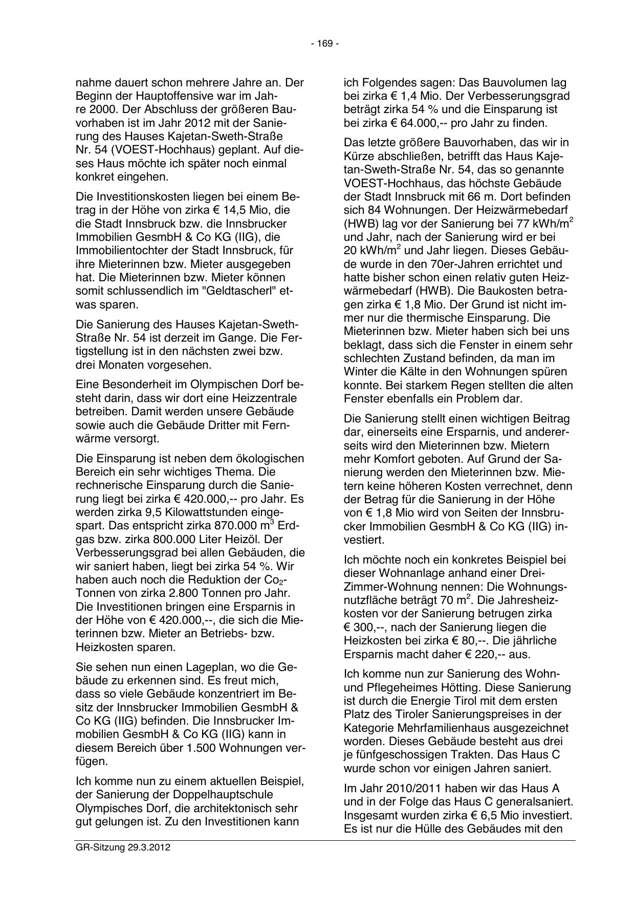 Ich komme nun zur Sanierung des Wohnund Pflegeheimes Hötting. Diese Sanierung