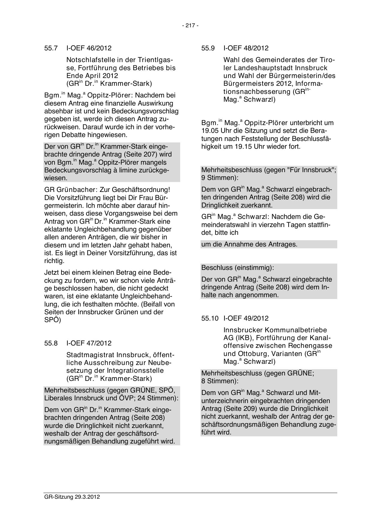 Mehrheitsbeschluss (gegen "Für Innsbruck";