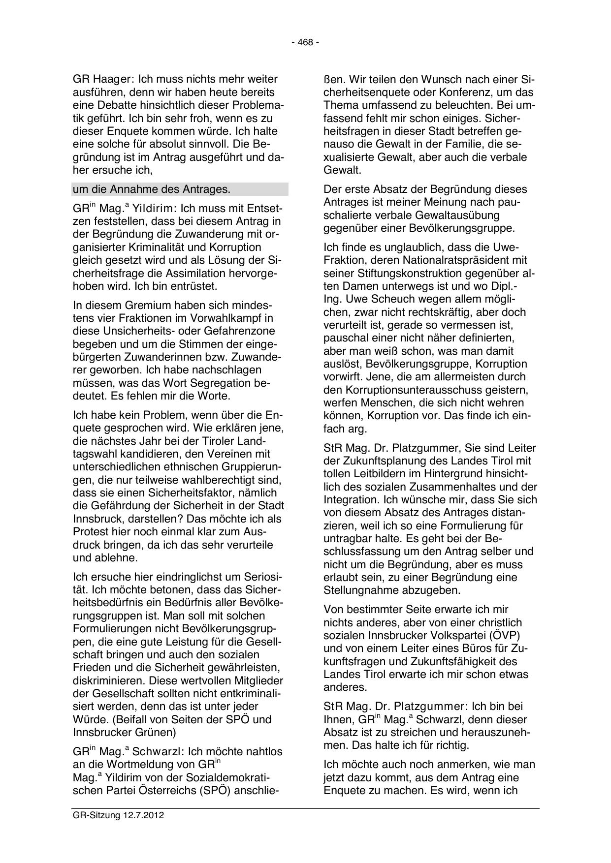 Mag.a Yildirim von der Sozialdemokratischen Partei Österreichs (SPÖ) anschlieGR-Sitzung 12.7.2012