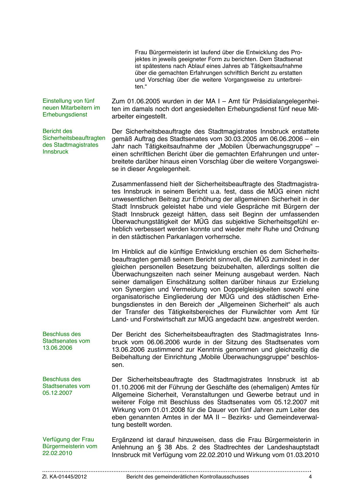 Zusammenfassend hielt der Sicherheitsbeauftragte des Stadtmagistrates Innsbruck in seinem Bericht u.a. fest, dass die MÜG einen nicht