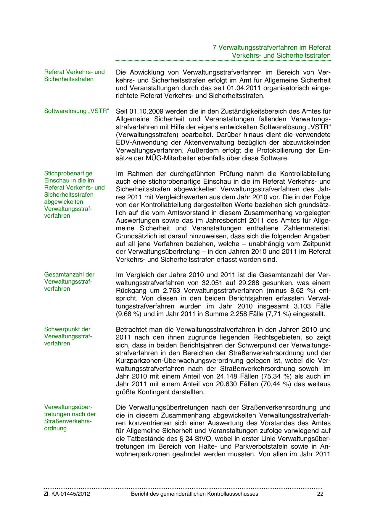 der Verwaltungsübertretung – in den Jahren 2010 und 2011 im Referat
