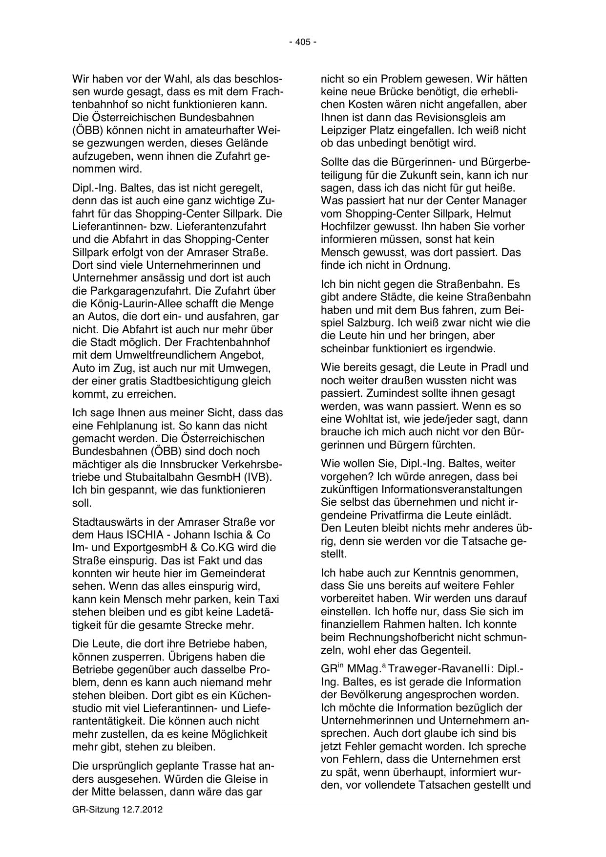 GRin MMag.a Traweger-Ravanelli: Dipl.Ing. Baltes, es ist gerade die Information