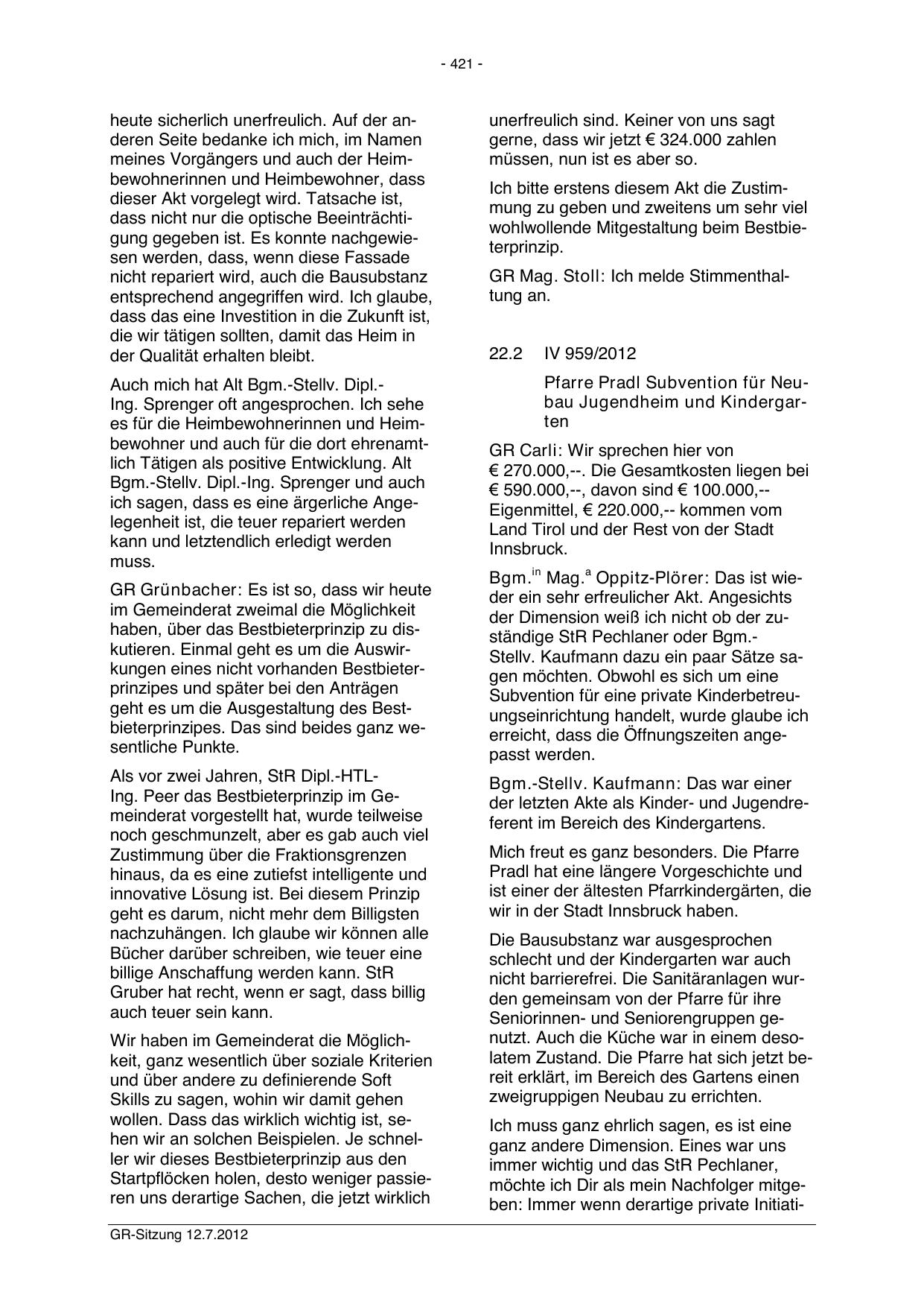 haben, über das Bestbieterprinzip zu diskutieren. Einmal geht es um die Auswirkungen eines nicht vorhanden Bestbieterprinzipes und später bei den Anträgen