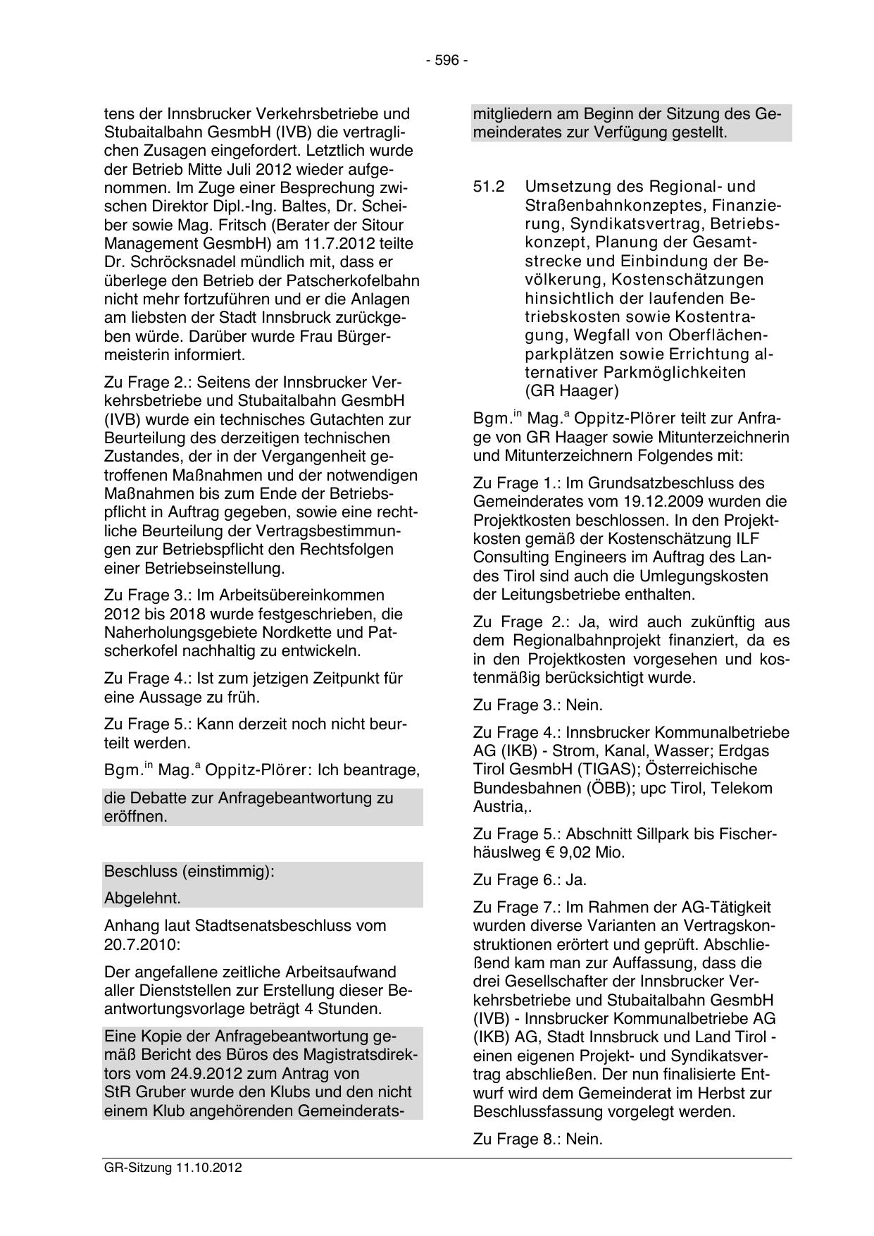 Zu Frage 2.: Seitens der Innsbrucker Verkehrsbetriebe und Stubaitalbahn GesmbH