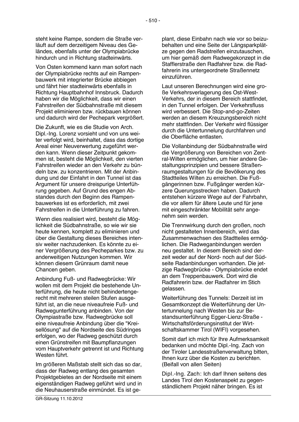 die Neuhauserstraße einmündet. Es ist geGR-Sitzung 11.10.2012