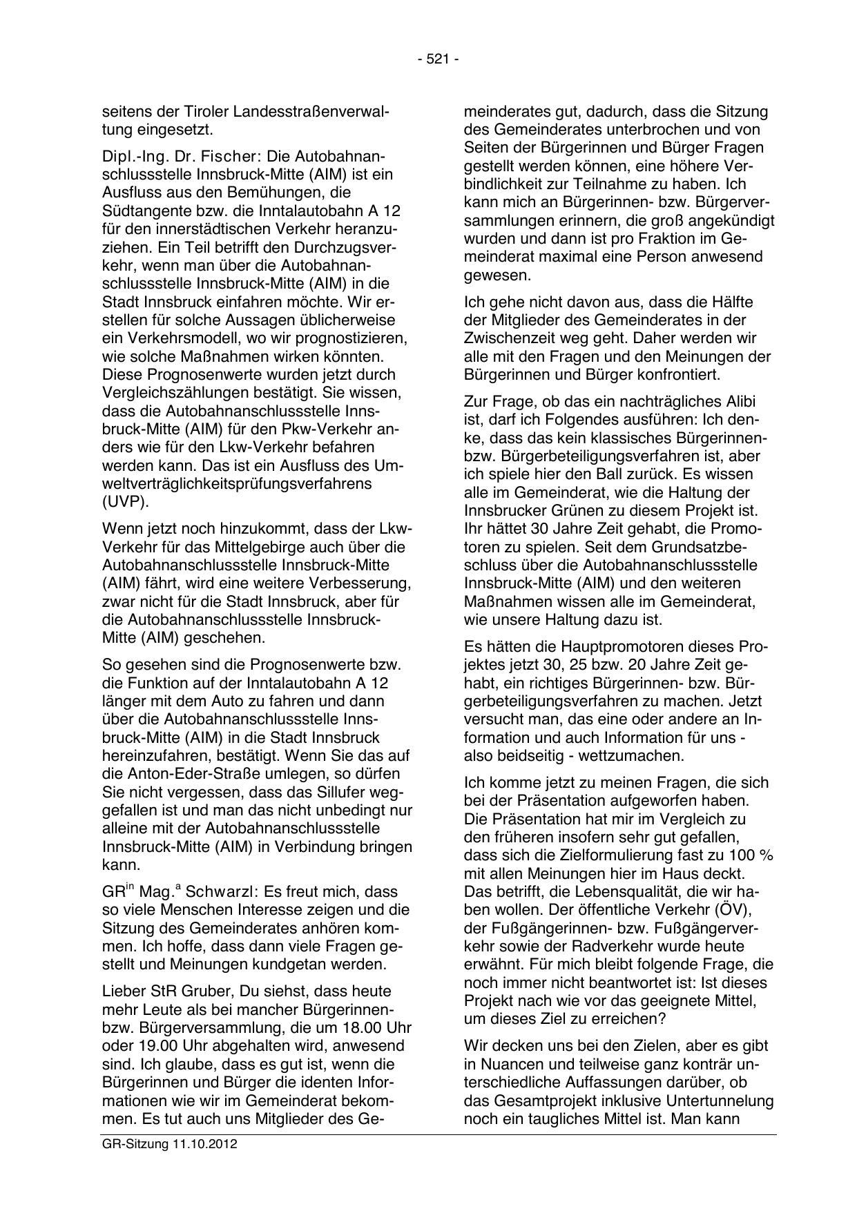 Bürgerinnen und Bürger die identen Informationen wie wir im Gemeinderat bekommen. Es tut auch uns Mitglieder des GeGR-Sitzung 11.10.2012