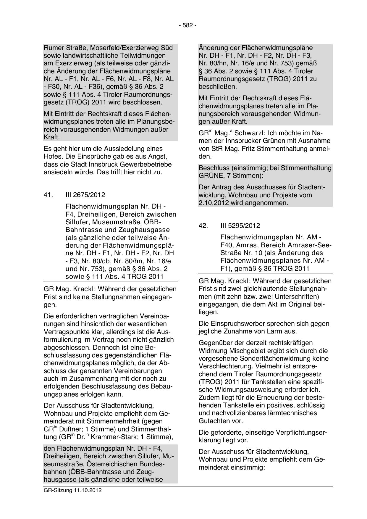 sowie § 111 Abs. 4 Tiroler Raumordnungsgesetz (TROG) 2011 wird beschlossen.