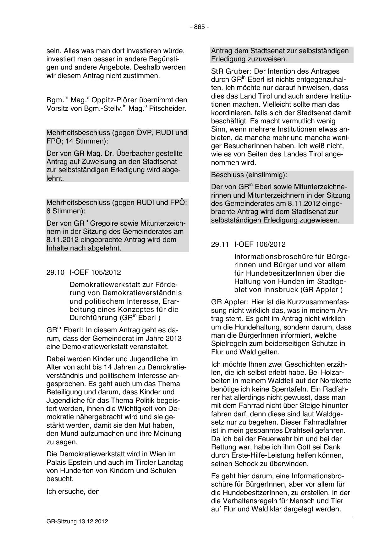 GRin Eberl: In diesem Antrag geht es darum, dass der Gemeinderat im Jahre 2013