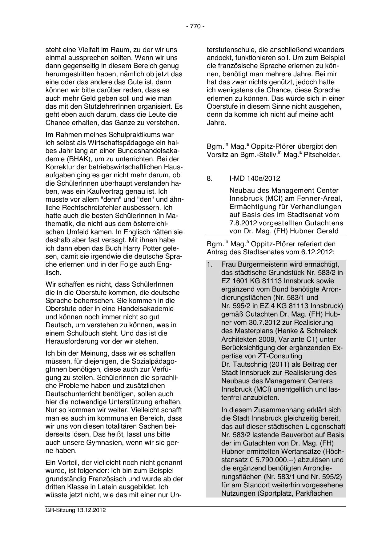 wüsste jetzt nicht, wie das mit einer nur UnGR-Sitzung 13.12.2012