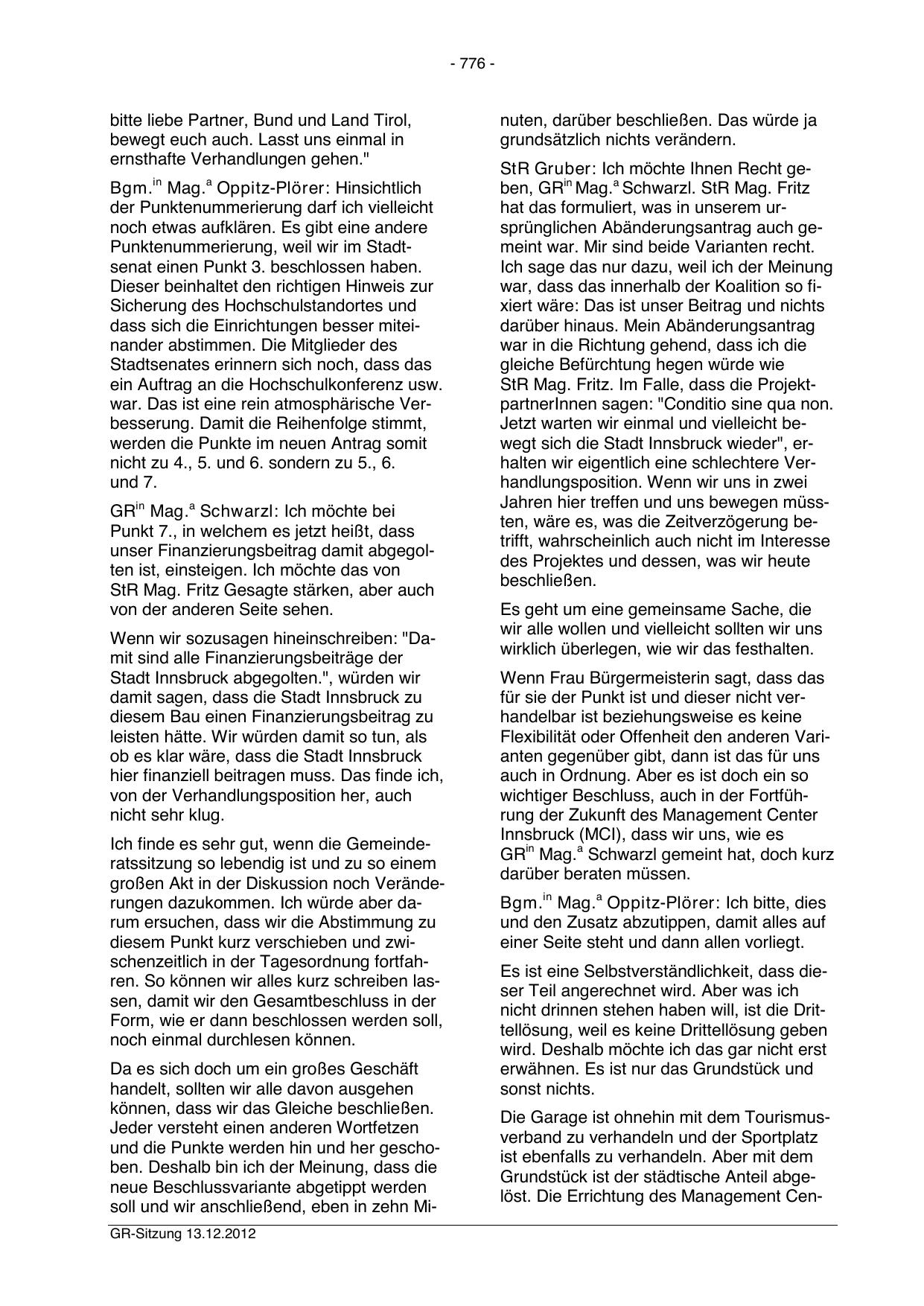 Jetzt warten wir einmal und vielleicht bewegt sich die Stadt Innsbruck wieder", erhalten wir eigentlich eine schlechtere Verhandlungsposition. Wenn wir uns in zwei