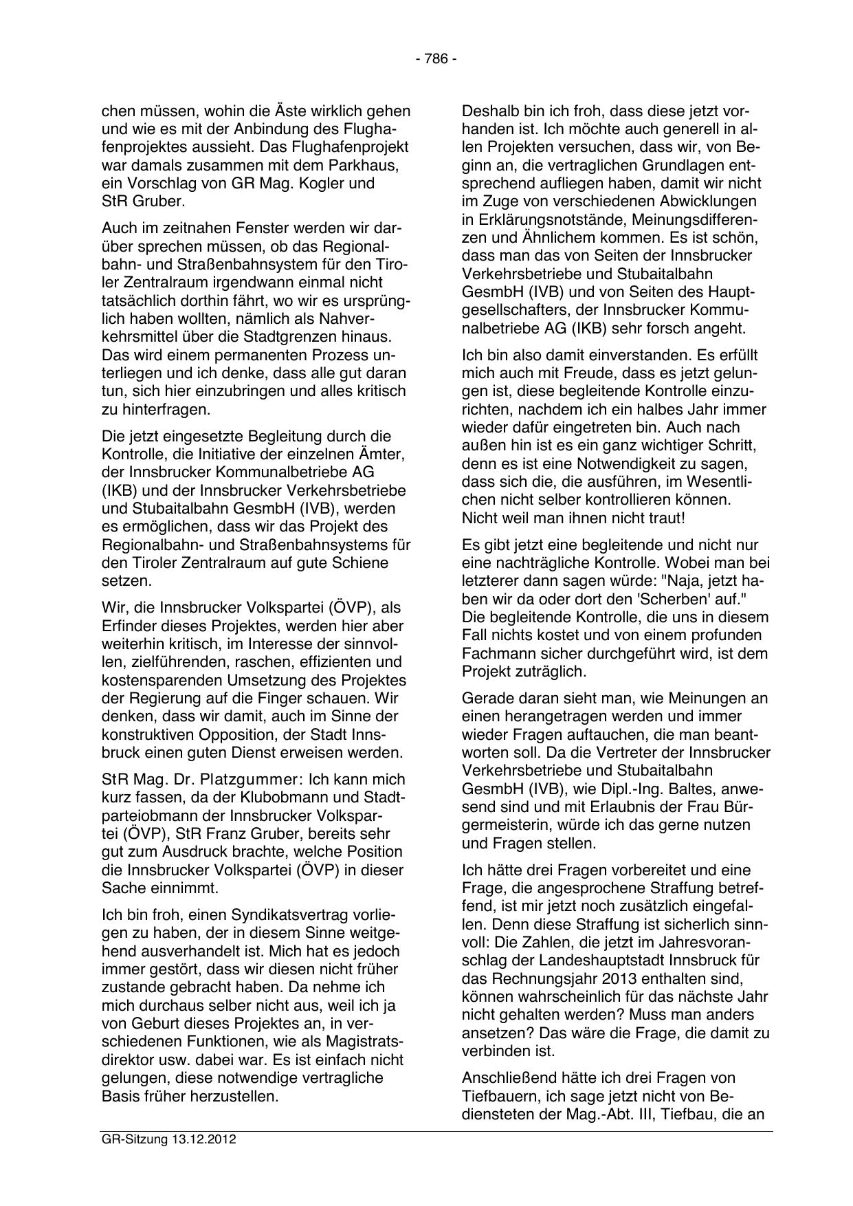 kurz fassen, da der Klubobmann und Stadtparteiobmann der Innsbrucker Volkspartei (ÖVP), StR Franz Gruber, bereits sehr