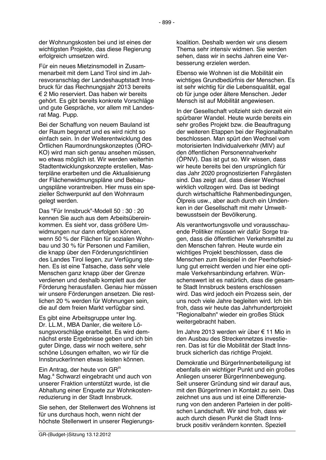 höchste Stellenwert in unserer RegierungsGR-(Budget-)Sitzung 13.12.2012