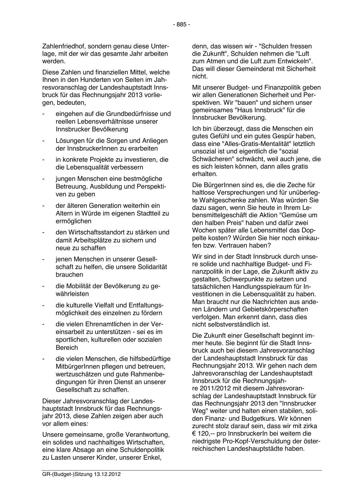 Ihnen in den Hunderten von Seiten im Jahresvoranschlag der Landeshauptstadt Innsbruck für das Rechnungsjahr 2013 vorliegen, bedeuten,