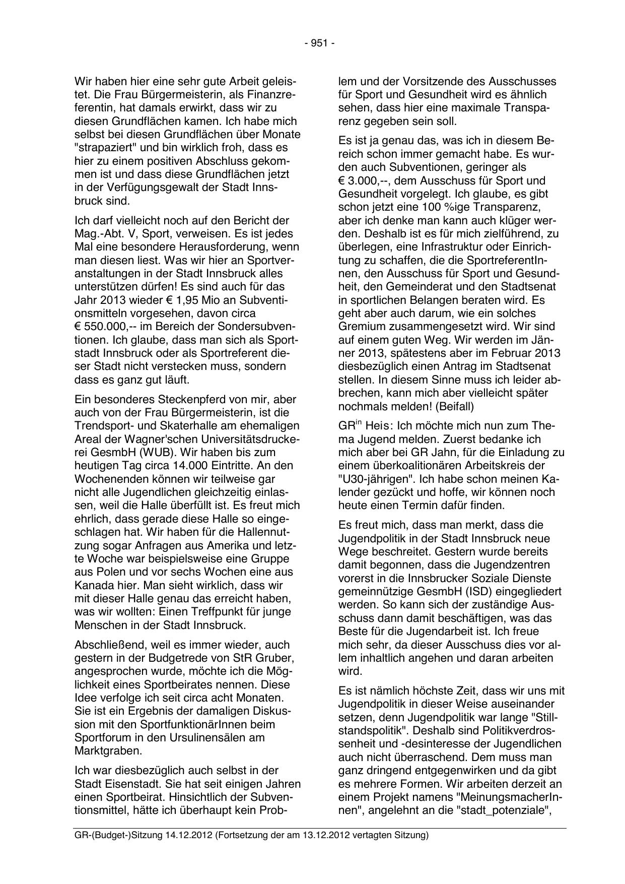 GR-(Budget-)Sitzung 14.12.2012 (Fortsetzung der am 13.12.2012 vertagten Sitzung)
