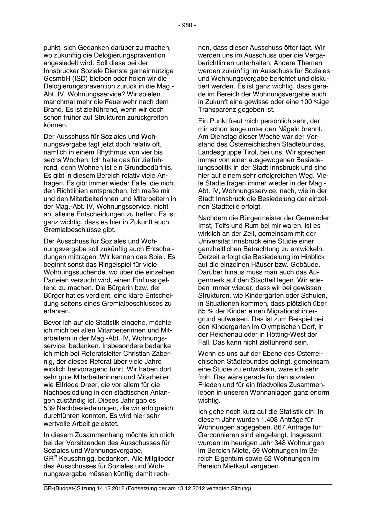 immer von einer ausgewogenen Besiedelungspolitik in der Stadt Innsbruck und sind