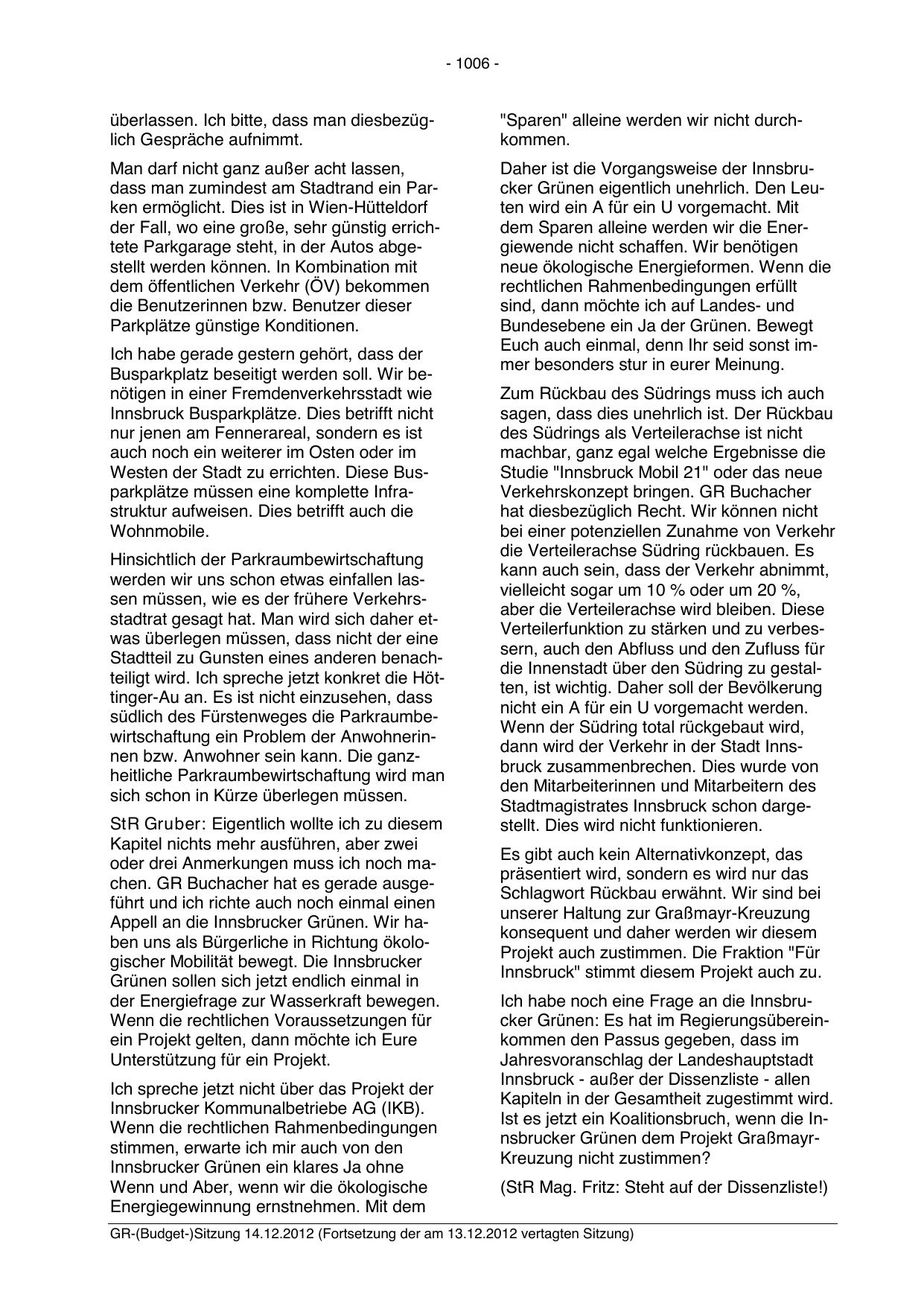 Ich habe noch eine Frage an die Innsbrucker Grünen: Es hat im Regierungsübereinkommen den Passus gegeben, dass im