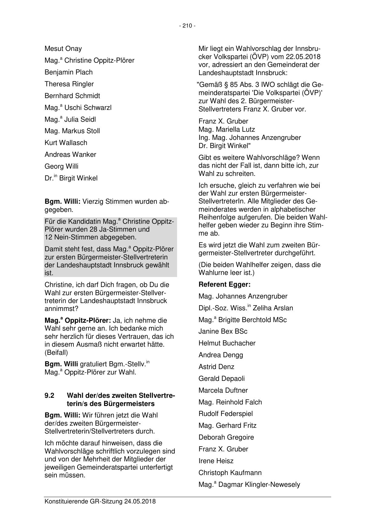 Mir liegt ein Wahlvorschlag der Innsbrucker Volkspartei (ÖVP) vom 22.05.2018