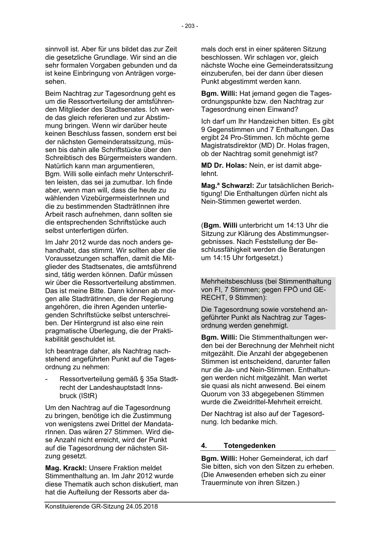 Bgm. Willi: Die Stimmenthaltungen werden bei der Berechnung der Mehrheit nicht