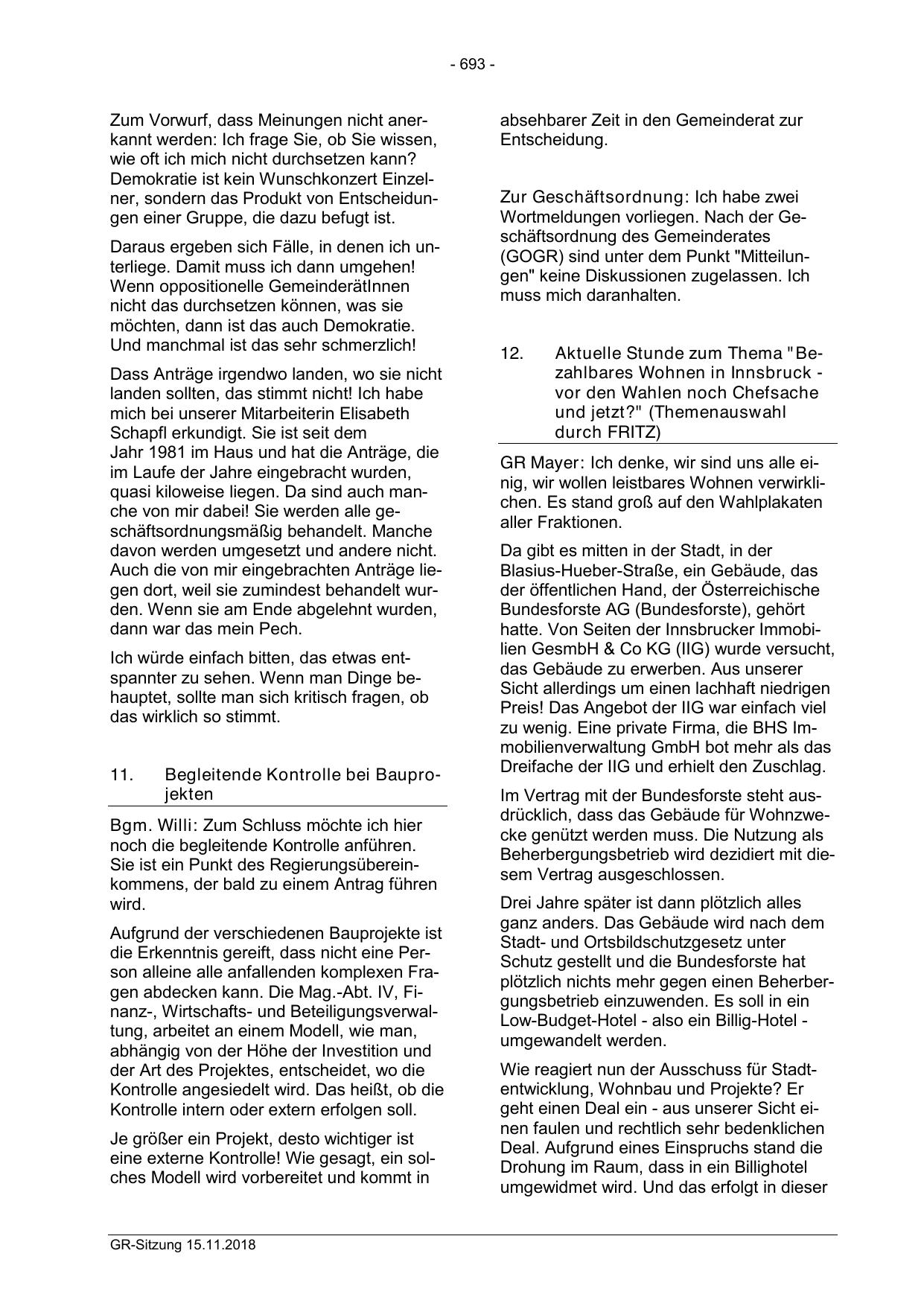 GR Mayer: Ich denke, wir sind uns alle einig, wir wollen leistbares Wohnen verwirklichen. Es stand groß auf den Wahlplakaten