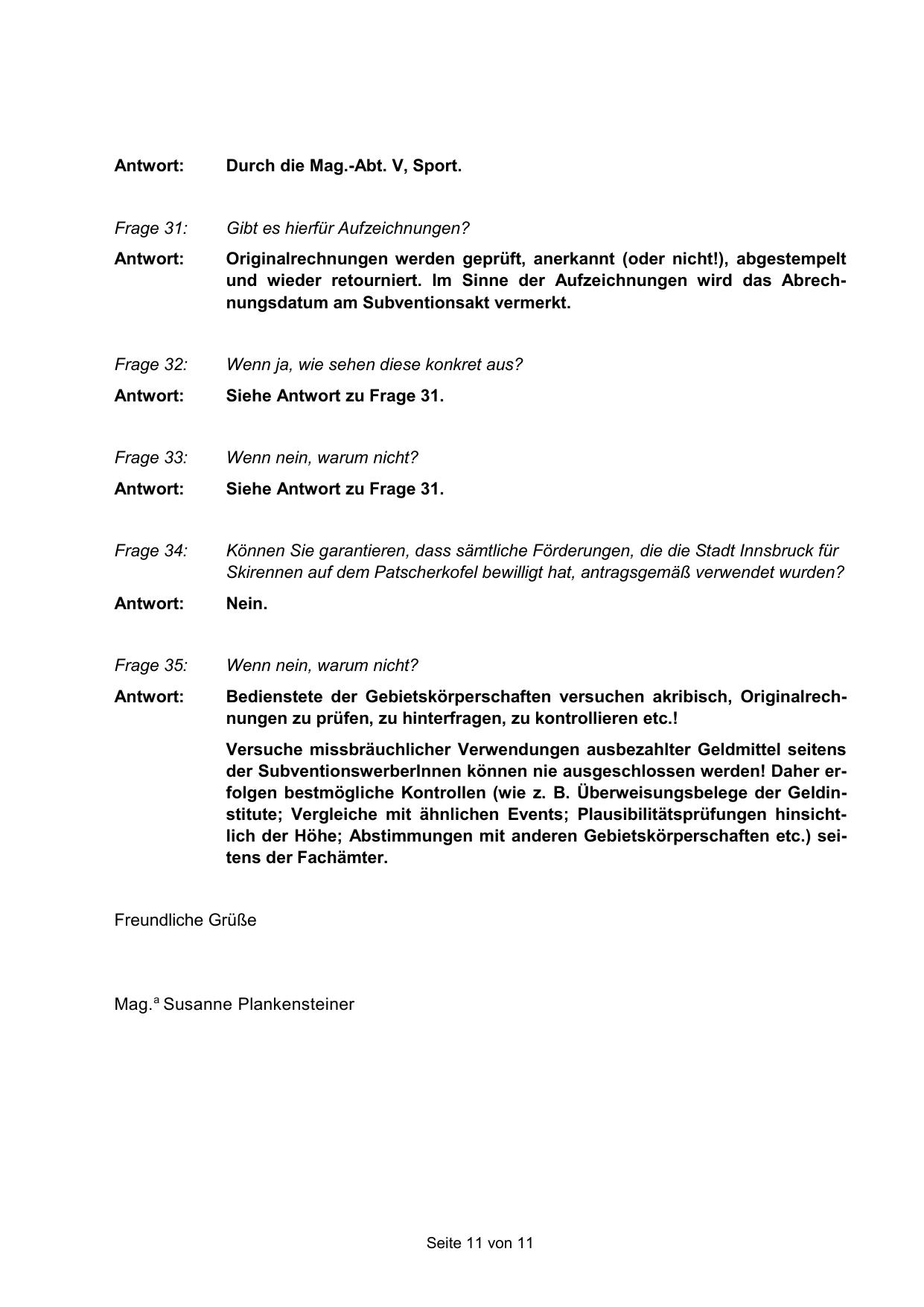 Können Sie garantieren, dass sämtliche Förderungen, die die Stadt Innsbruck für