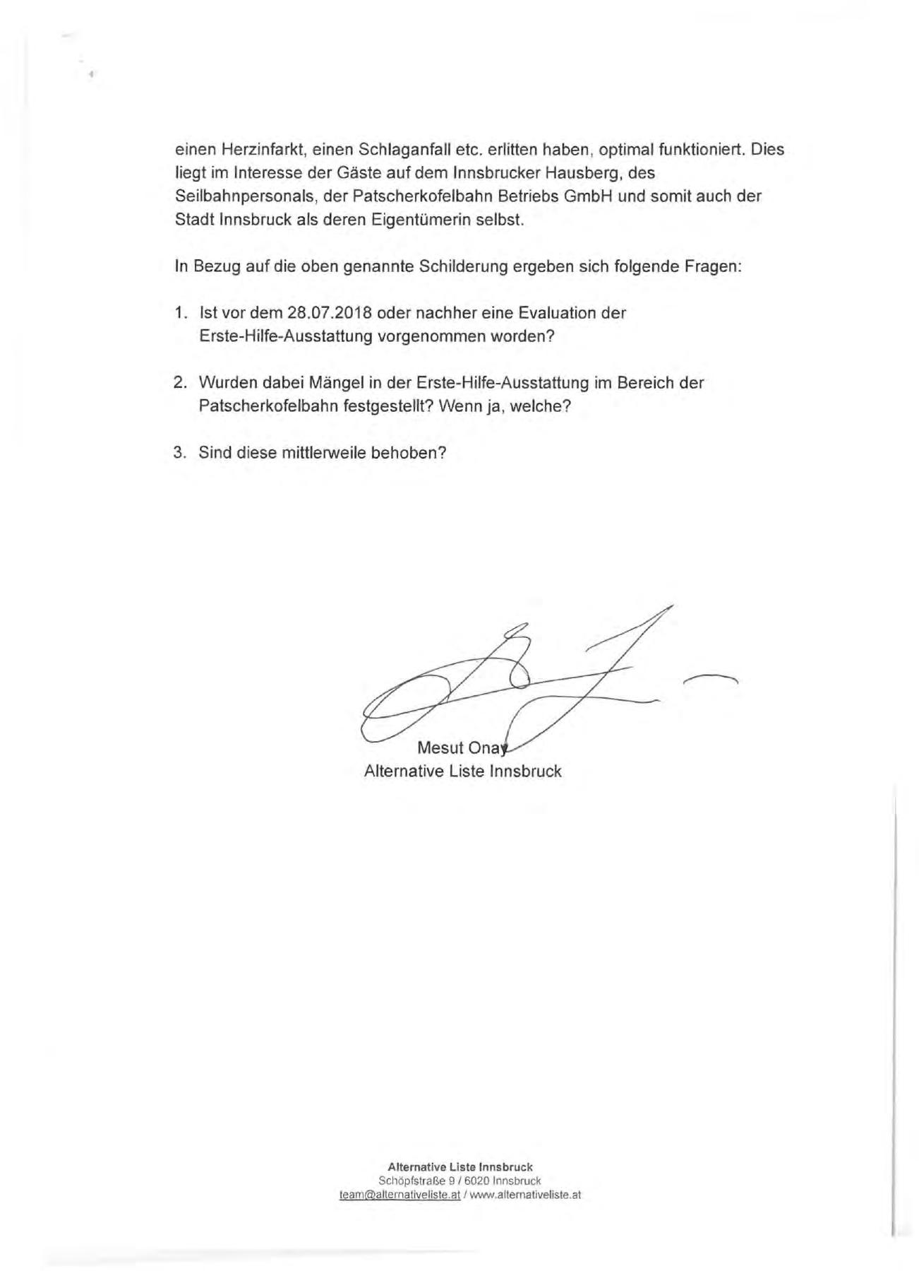 Patscherkofelbahn festgestellt? Wenn ja , welche?