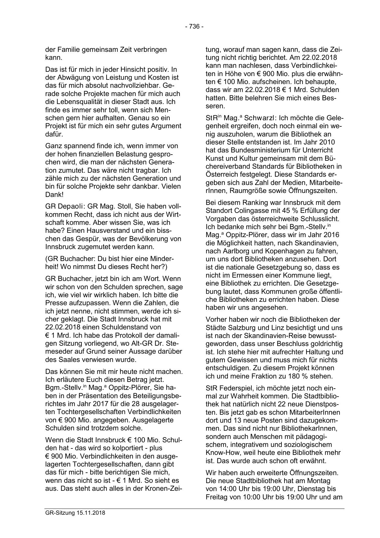 Wenn die Stadt Innsbruck € 100 Mio. Schulden hat - das wird so kolportiert - plus
