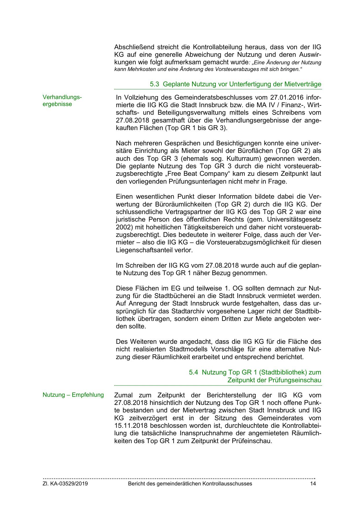 In Vollziehung des Gemeinderatsbeschlusses vom 27.01.2016 informierte die IIG KG die Stadt Innsbruck bzw. die MA IV / Finanz-, Wirtschafts- und Beteiligungsverwaltung mittels eines Schreibens vom