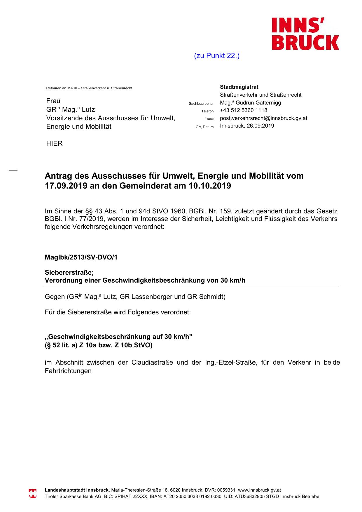 17.09.2019 an den Gemeinderat am 10.10.2019