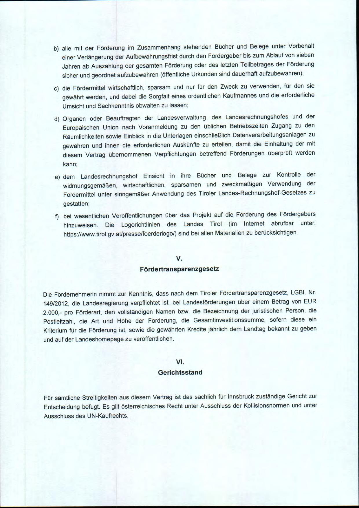 Die FOrdernehmerin nimmt zur Kenntnis, dass nach dem Tiroler Fordertransparenzgesetz, LGBI Nr"