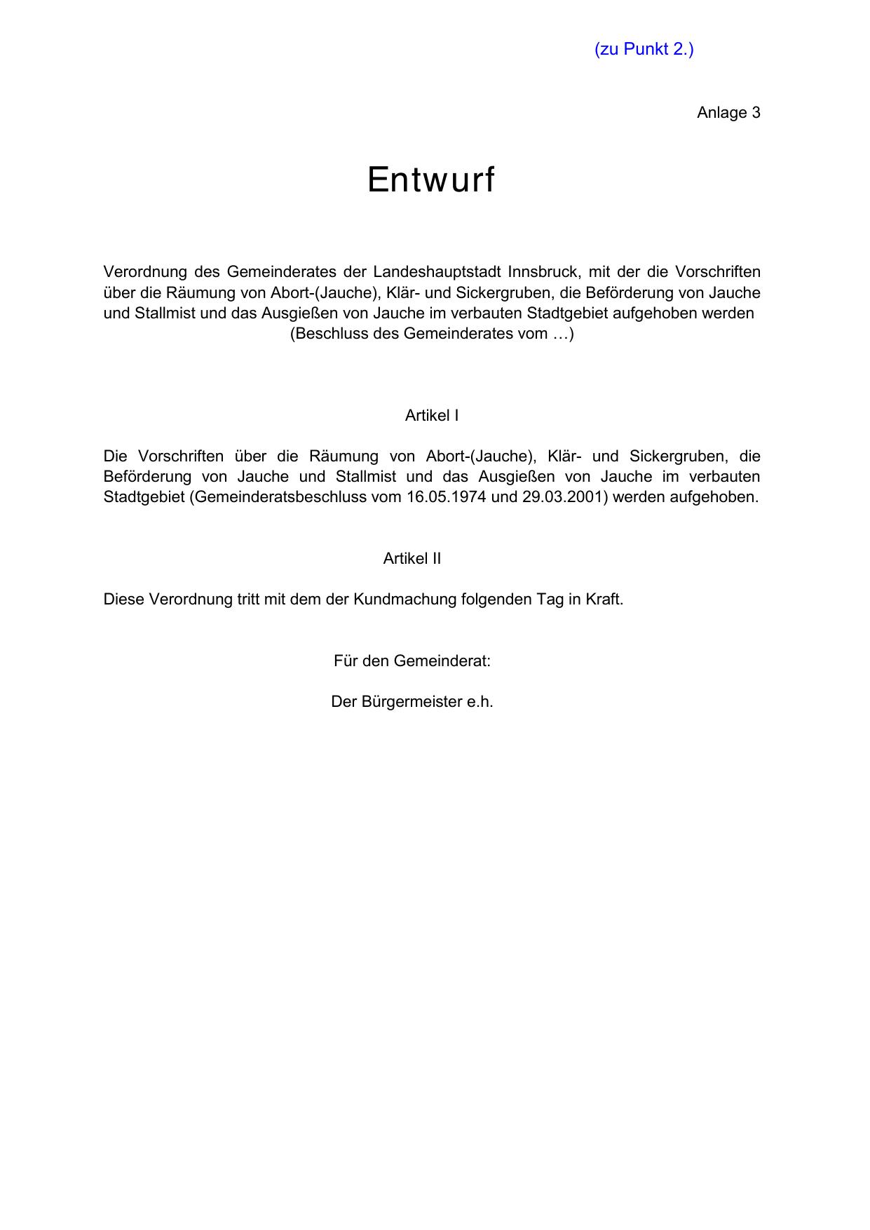 Verordnung des Gemeinderates der Landeshauptstadt Innsbruck, mit der die Vorschriften