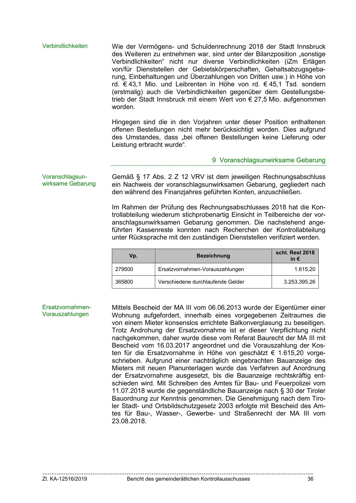 Wie der Vermögens- und Schuldenrechnung 2018 der Stadt Innsbruck
