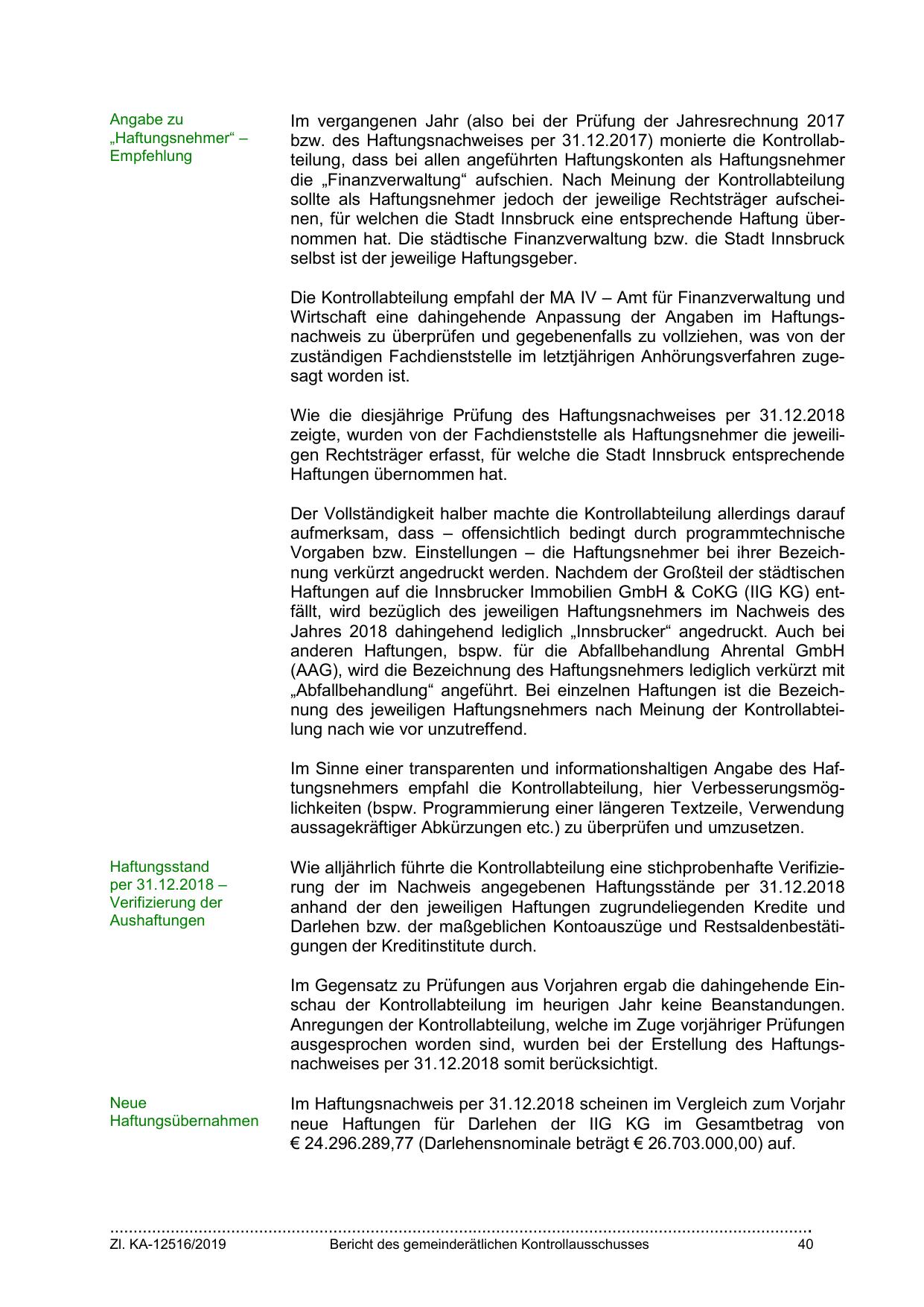 Haftungen auf die Innsbrucker Immobilien GmbH & CoKG (IIG KG) entfällt, wird bezüglich des jeweiligen Haftungsnehmers im Nachweis des