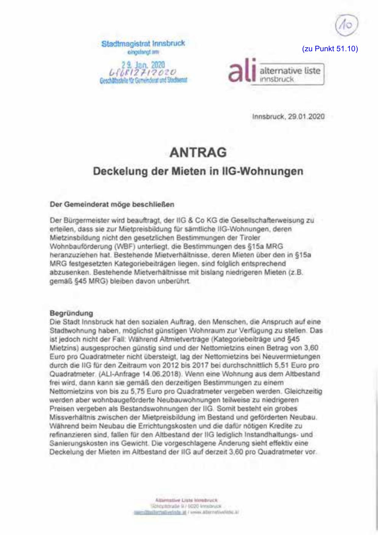 Deckelung der Mieten im Altbestand der IIG auf derzeit 3,60 pro Quadratmeter vor.