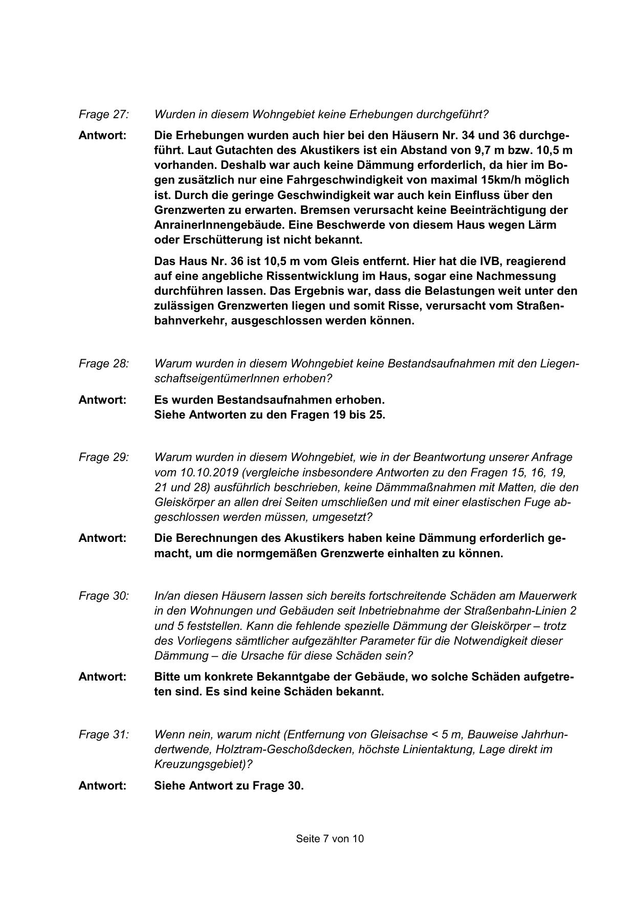 zulässigen Grenzwerten liegen und somit Risse, verursacht vom Straßenbahnverkehr, ausgeschlossen werden können.