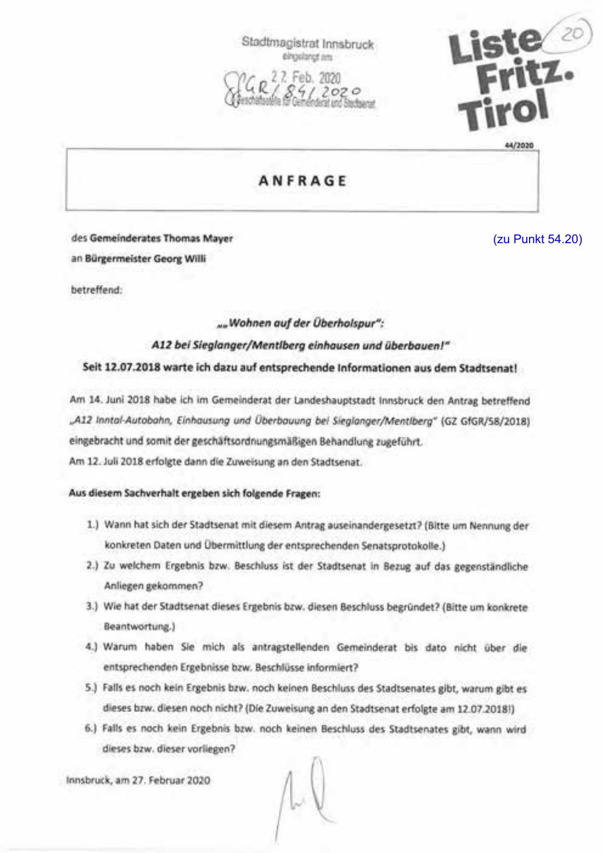 Innsbruck, am 27. Februar 2020